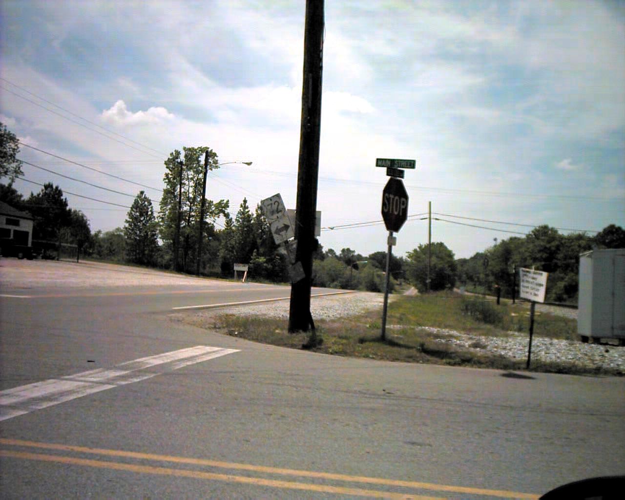 Near Barton Pope's Tavern-On Jackson's Military Road in Florence 2002 picture in Cherokee AL. 1950's US 72 sign is still posted (US72 was moved from this street in 1969)